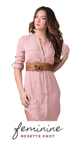 Place the wider portion of the belt in the back and bring the ties around to the front. Tie once and then follow the direction to tie the rosette! Voila! I’m not lying when I say the Wrap Belt is for every body, shape AND it’s one-size!